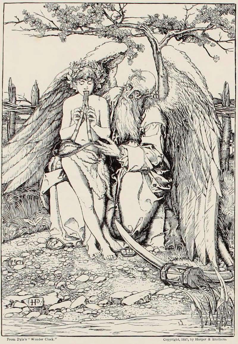 Father Time [Signature] dictates how many beats are in each measure from The Wonder Clock by Howard Pyle (1887).
