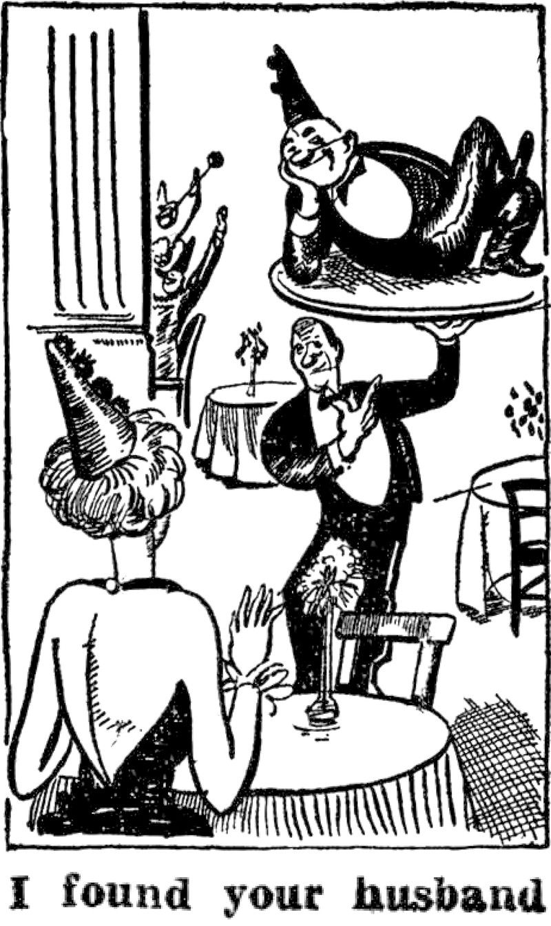 "I found your husband."  From the Bombay Sunday Chronicle, 1937.