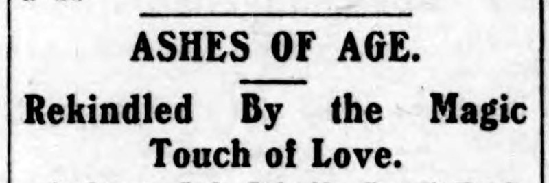 "Ashes of age rekindled by the magic touch of love."  From the Duluth Evening Herald, 1901.