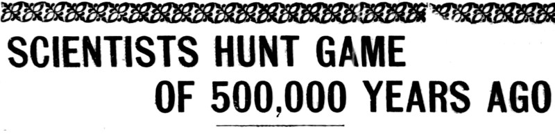 "Scientists hunt game of 500,000 years ago."  From the Duluth Evening Herald, 1914.