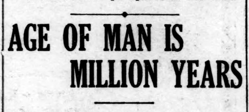 "Age of man is million years."  From the Duluth Evening Herald, 1911.