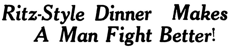 "Ritz-style dinner makes a man fight better!"  From the Bombay Sunday Chronicle, 1956.