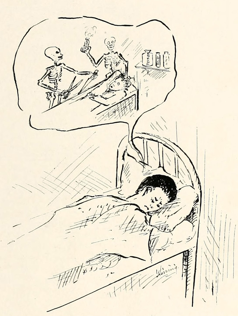 #vintage illustration #nightmare #skeleton #vintage yearbook #yearbook #tables turned #1910s
