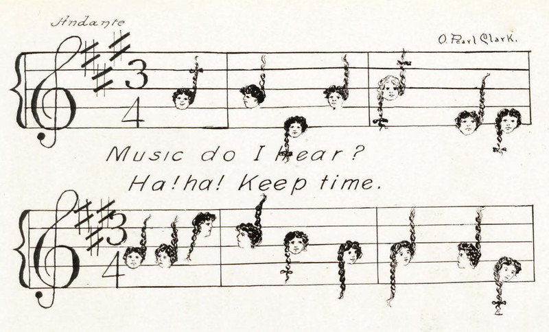 Revealed -- the stems on musical notes are braids.  From the University of Arkansas' 1907 yearbook.