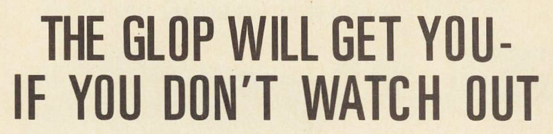 "The glop will get you -- if you don't watch out."  From 73 Magazine, 1970.