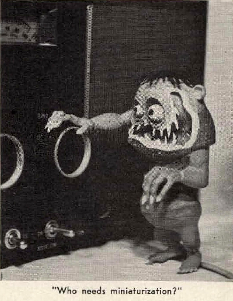 "Who needs miniaturization?"  From 73 Magazine, 1967.