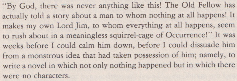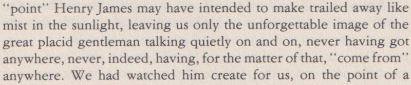 [More snippets attached. Note that the Rhetorical Question Answered segues nicely into one of those "Borgesian, Jamesian..."-style rosters; and the actual Jamesian snippets culminate in some flapping.]
