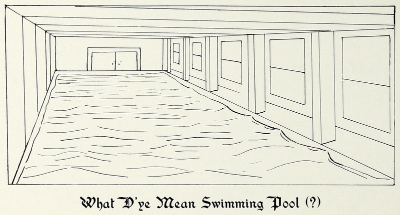 #swimming pool #vintage yearbook #flooded #vintage illustration #yearbook #illustration