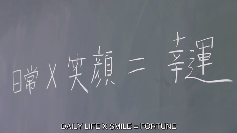 "Daily life times smile equals fortune."  From How to Eliminate My Teacher (2020).