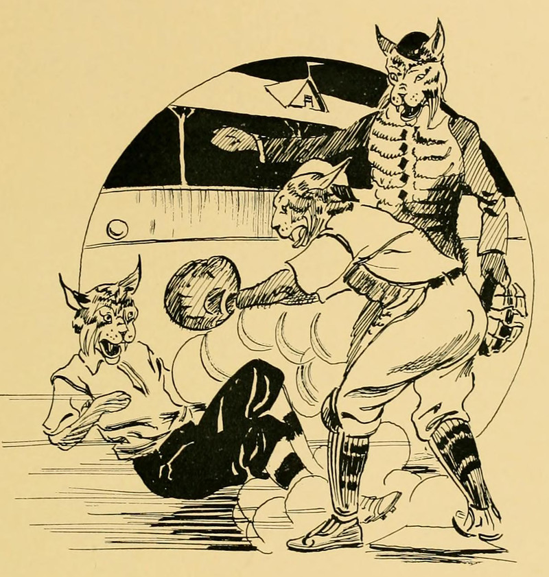 #vintage illustration #anthropomorphism #vintage yearbook #hybrid #yearbook #cat people #baseball #cat headed #illustration #bobcat
