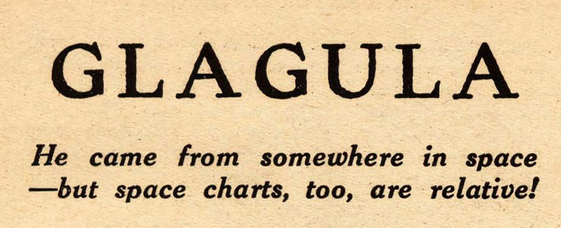 "Glagula: he came from somewhere in space—but space charts, too, are relative!"  From Astounding, 1936.