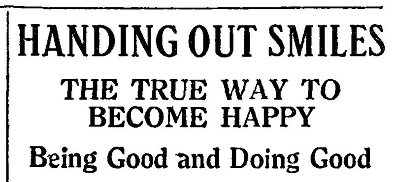 "Handing out smiles.  The true way to become happy.  Being good and doing good."  From The Children's Newspaper, 1922.