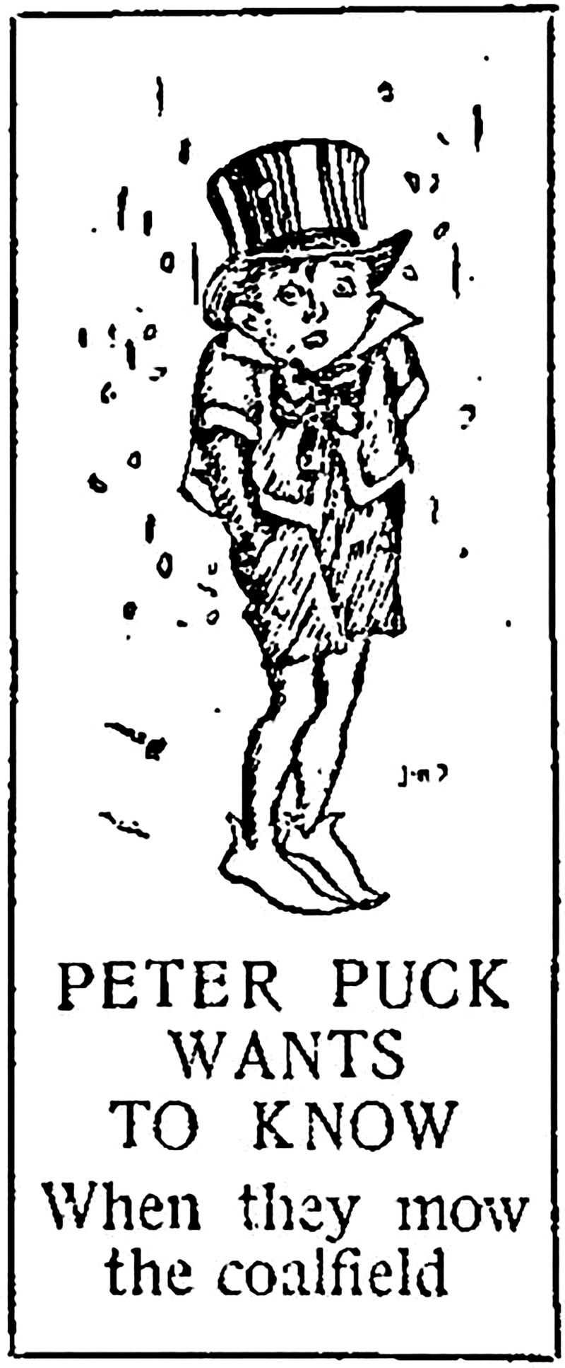 "Peter Puck wants to know when they mow the coalfield."  From The Children's Newspaper, 1926.
