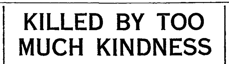 "Killed by too much kindness."  From The Children's Newspaper, 1926.
