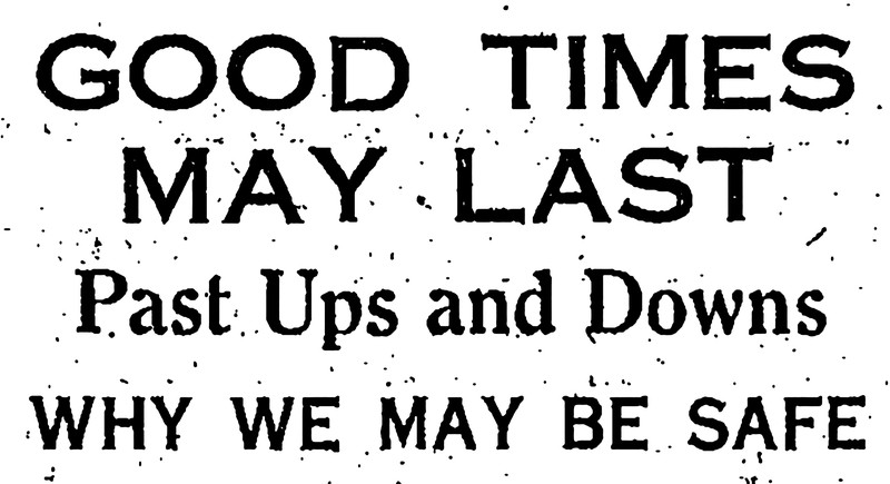 "Good times may last.  Past ups and downs.  Why we may be safe."  From The Children's Newspaper, 1937.