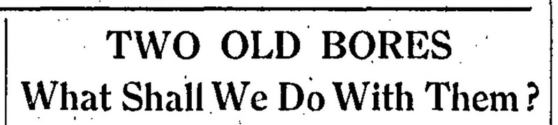 "Two old bores.  What shall we do with them?"  From The Children's Newspaper, 1930.