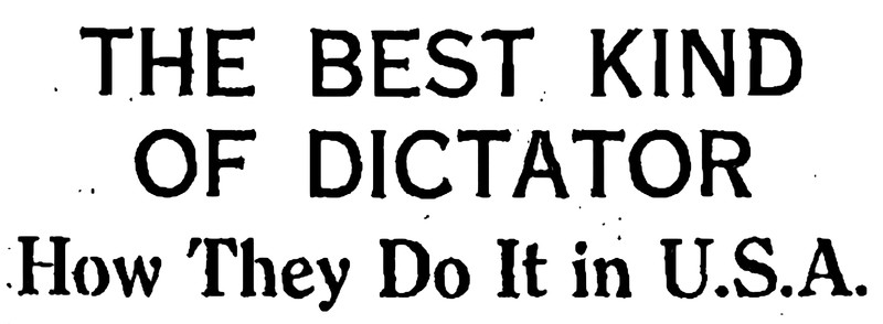 "The best kind of dictator.  How they do it in the USA."  From The Children's Newspaper, 1934.