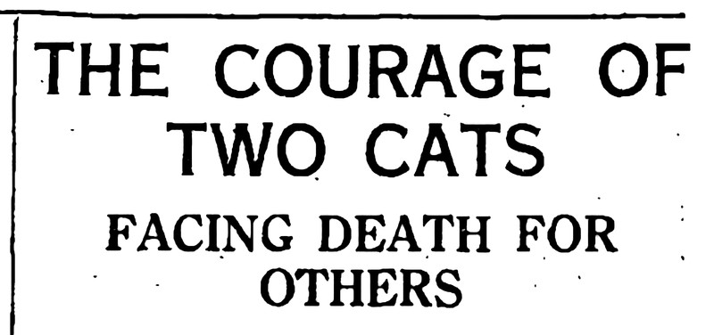 "The courage of two cats facing death for others."  From The Children's Newspaper, 1927.