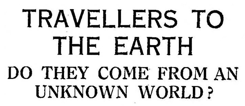 "Travellers to earth.  Do they come from an unknown world?"  From The Children's Newspaper, 1920.
