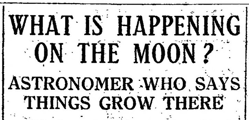 "What is happening on the moon?  Astronomer who says things grow there."  From The Children's Newspaper, 1921.