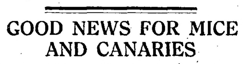 Finally!  "Good news for mice and canaries."  From The Children's Newspaper, 1928.