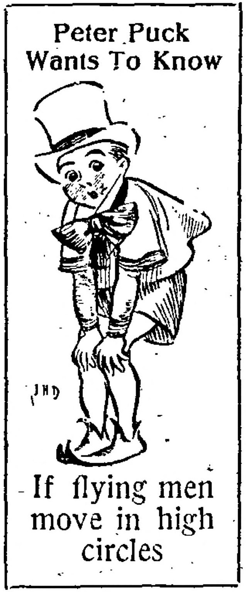 "Peter Puck wants to know if flying men move in high circles."  From The Children's Newspaper, 1928.