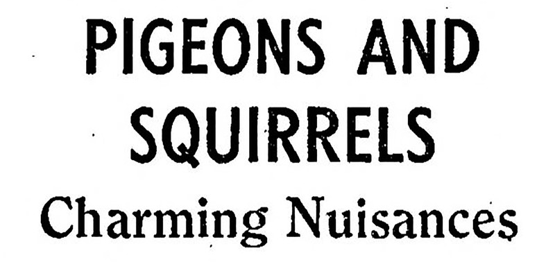 "Pigeons and squirrels: charming nuisances."  From The Children's Newspaper, 1938.
