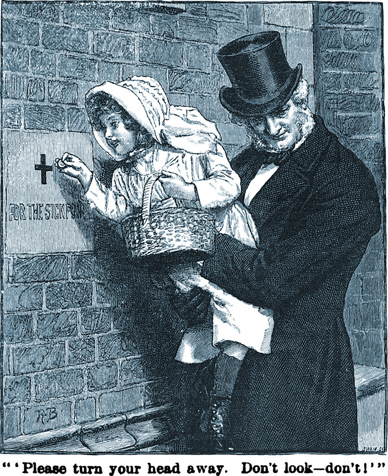 Bottom illustration: "The rejected alms." (