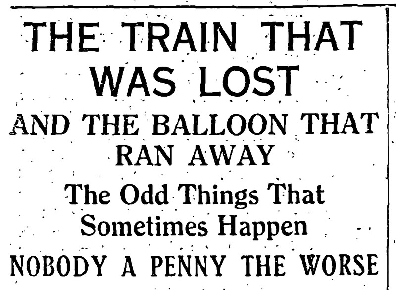 "The train that was lost and the balloon that ran away. The odd things that sometimes happen. Nobody a penny the worse." From The Children's Newspaper, 1925.