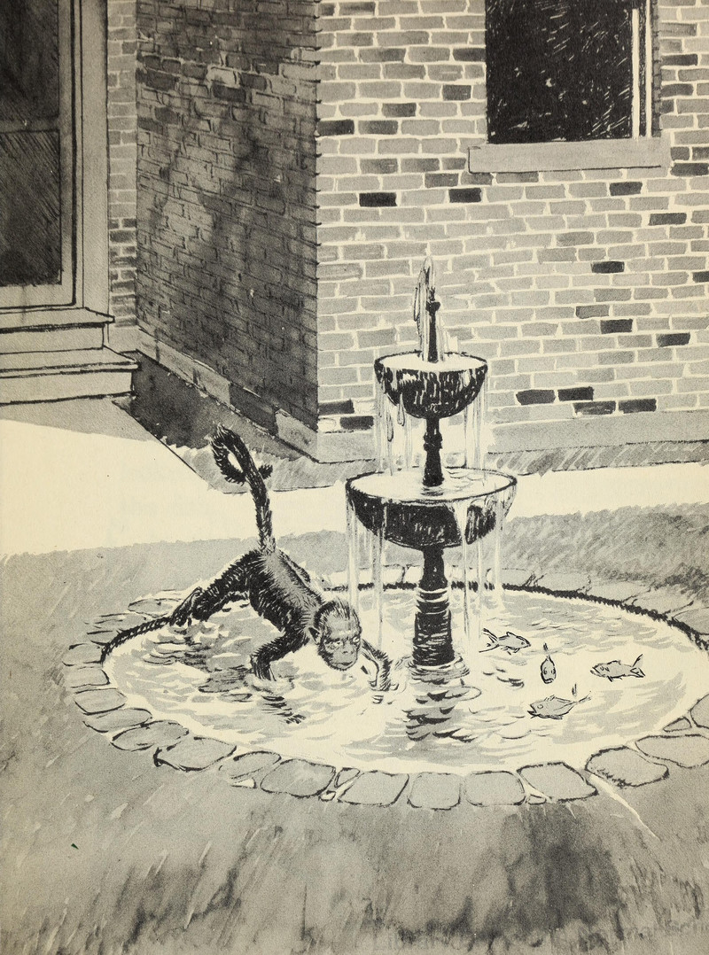 #vintage illustration #monkey #fountain #1940s #illustration