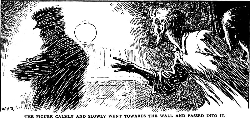 An illustration from a 1904 issue of The Reader magazine. The caption reads: "The figure calmly and slowly went towards the wall and passed into it."