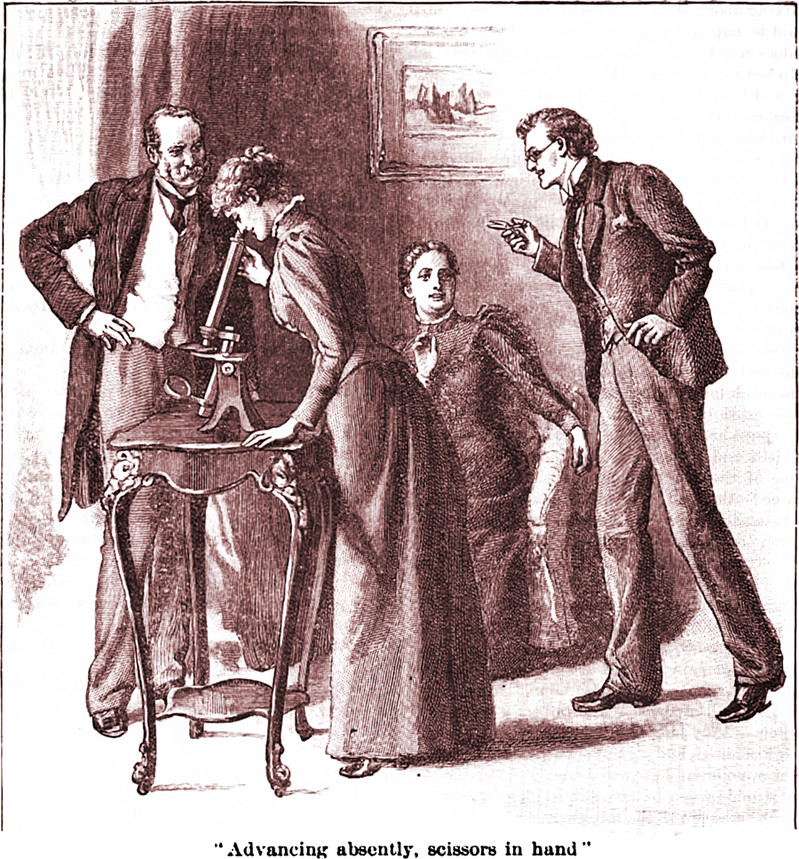 Here's a precursor to Augusten Burroughs' memoir Running with Scissors.  The caption reads: "Advancing absently, scissors in hand" (The Quiver, 1894).
