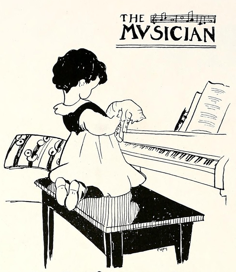 #vintage illustration #cat #piano #vintage yearbook #yearbook #musical animal #1920s #illustration