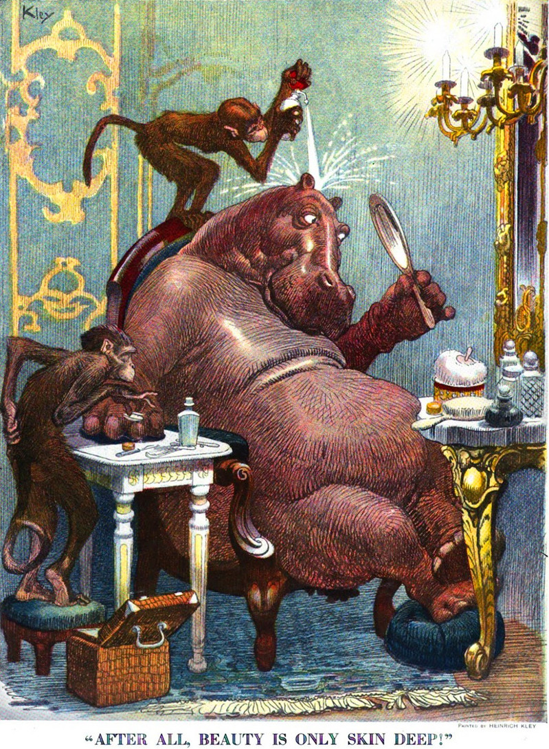 Fantasia's glamorous hippos. Compare the Disney version of a hippo with a powder puff and hand mirror to that in a 1914 issue of