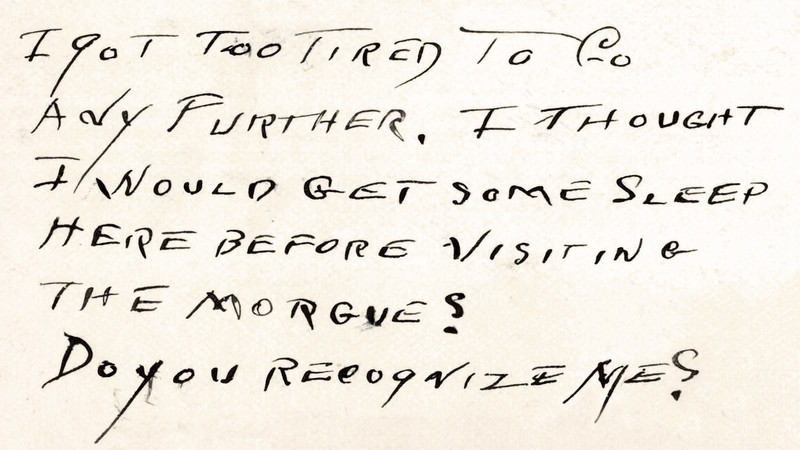 A spirit message from 1932: "I got too tired to go any further. I thought I would get some sleep here before visiting the morgue? Do you recognize me?"