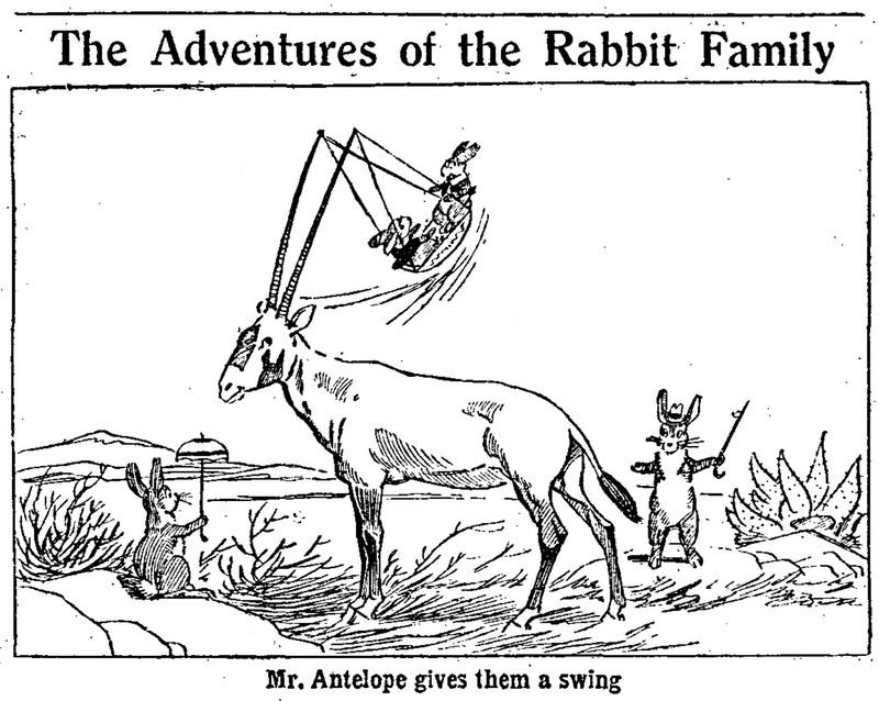 #vintage illustration #anthropomorphism #rabbit #1920s #swinging #illustration #antelope