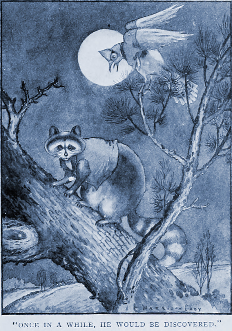 #vintage illustration #anthropomorphism #nest #bird #illustration #raccoon