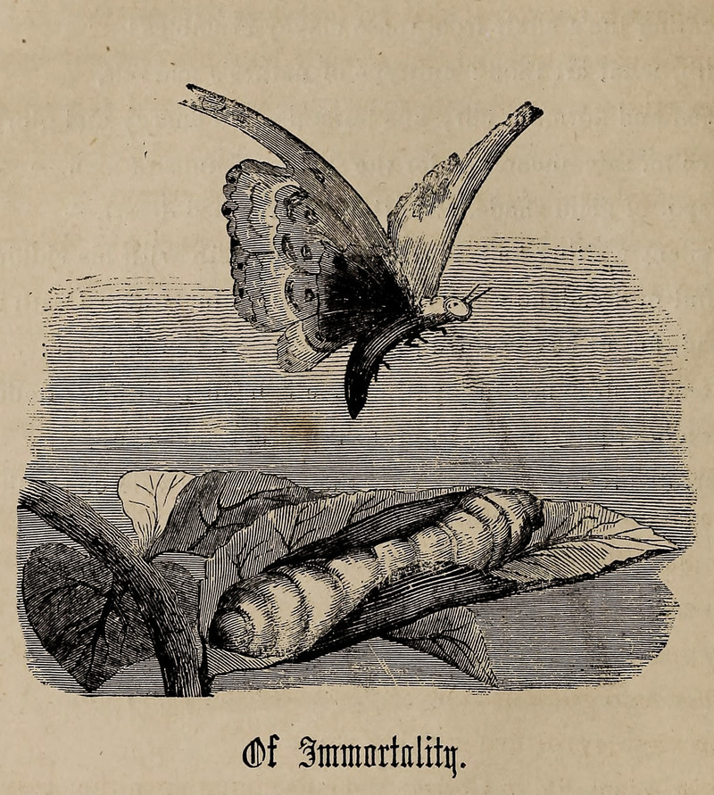 #vintage illustration #resurrection #immortality #illustration #moth #cocoon #1840s