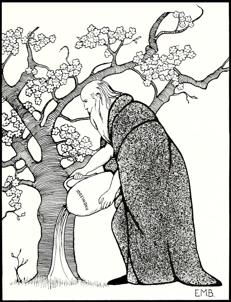 #vintage illustration #knowledge #vintage yearbook #yearbook #tree #illustration #watering can