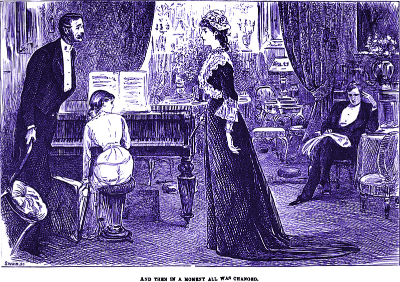 This illustration from Cornhill (1880) isn't especially remarkable except for the fact that it depicts one of those decisive moments in which everything is changed. (Frederic Tuten is a master at handling such turning points; see his Self Portraits: Fictions.)