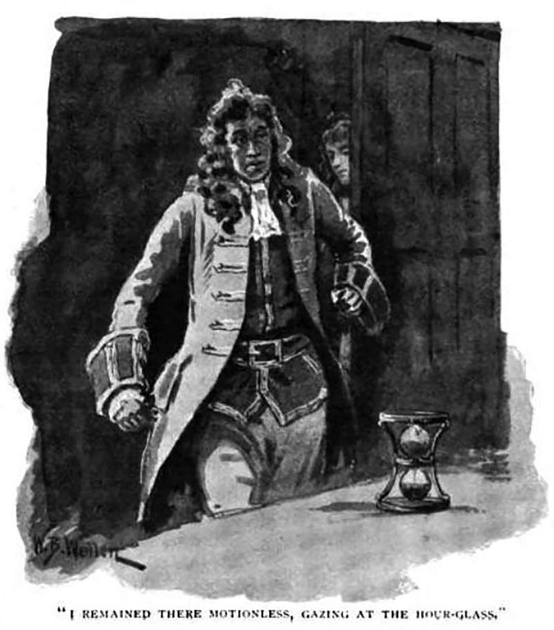 "I remained there motionless, gazing at the hour-glass."  From "The Hour Glass" by Robert Barr, in The Strand, 1898.
