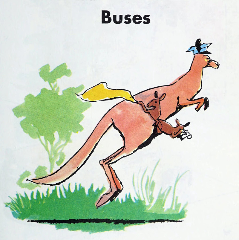 Today's kangaroo bus is from Living Together in the Neighborhood, Teacher's Edition by Thelma Reese and illustrated by Don Sibley, 1964.