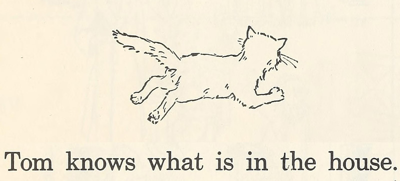 "Tom knows what is in the house."  From My Do and Learn Book To Accompany The Little White House by Ousley & Russell, 1948.