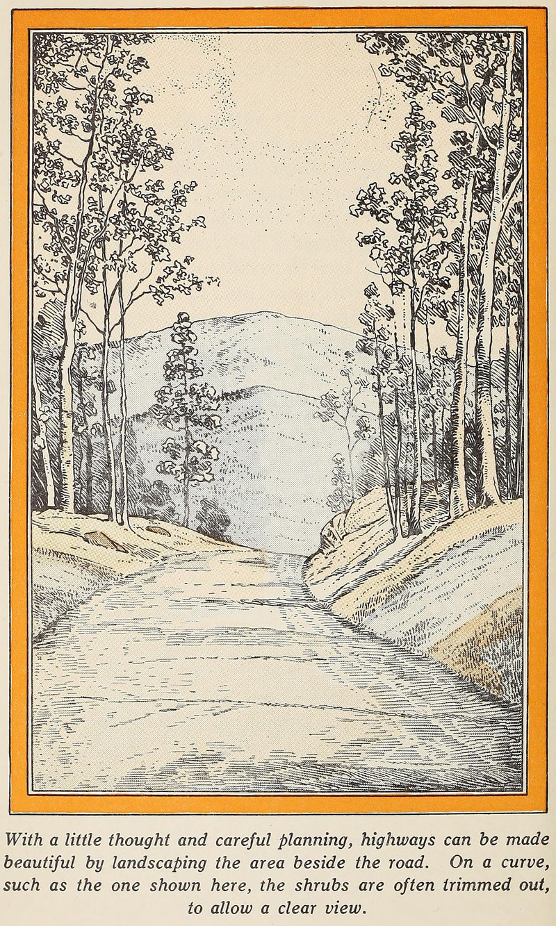 #vintage illustration #tree #nature #1930s #mountain #illustration #road