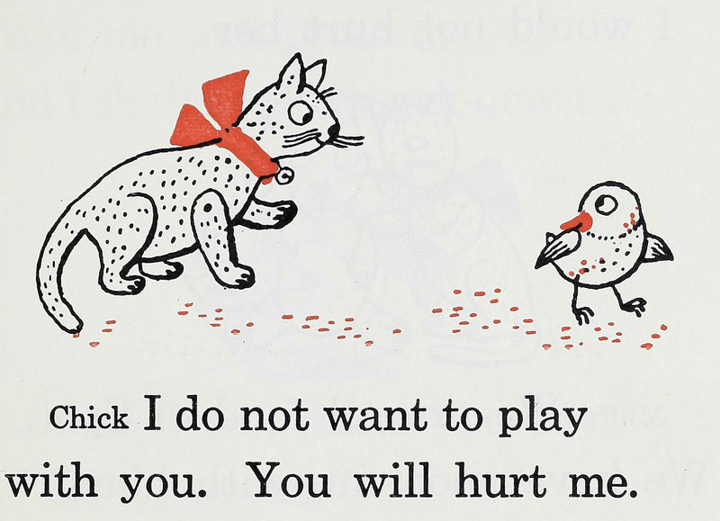 "I do not want to play with you.  You will hurt me."  From Toys At Play by Ketchum & Rice and illustrated by Hart, 1932.