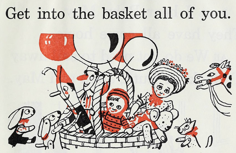 "Get into the basket all of you."  From Toys At Play by Ketchum & Rice and illustrated by Hart, 1932.