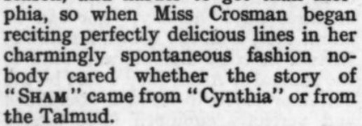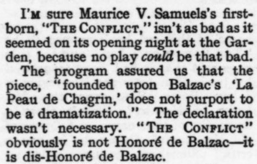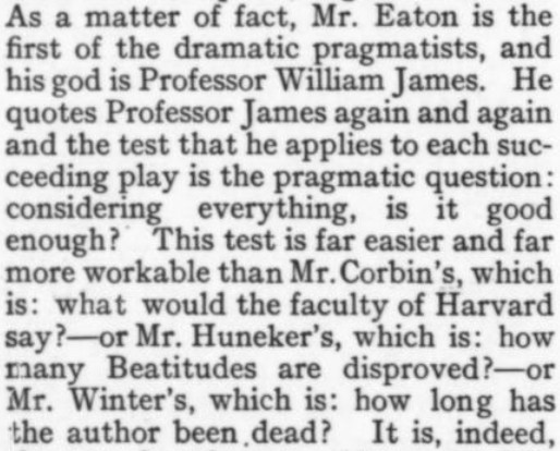 ***the wobbliest possible sort of Thomas-rot [Channing Pollock]***"Well, by the Lord Harry!"***The fact is, not a few of us are growing weary of Things. The material world threatens to become a bore if we make no occasional escape from it.***a drama written in very blank verse [Pollock]***He had a narrow escape from writing a tremendously good play. [Pollock]***