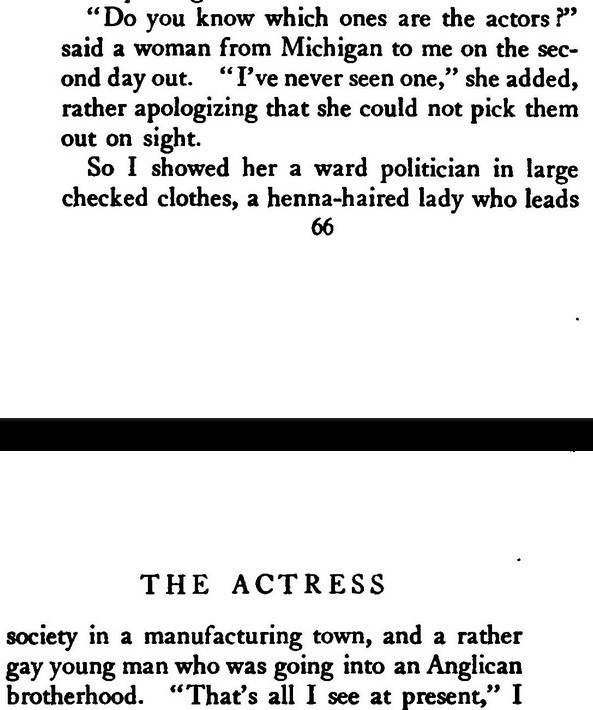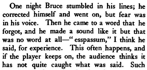 [Additional snippets attached. I note that the laughing-his-beard-off business is meant literally--he's an actor in the process of spirit-gumming a beard on in the dressing room.]