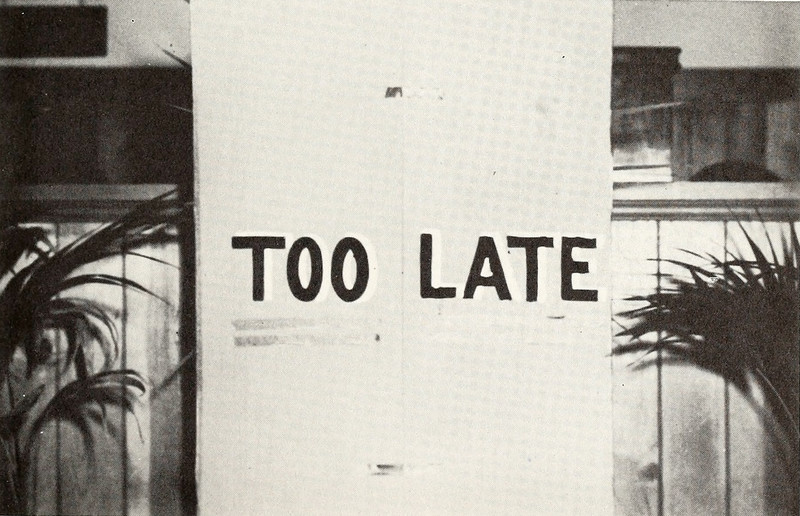 "Too late."  From Southern California Bible College's 1953 yearbook.