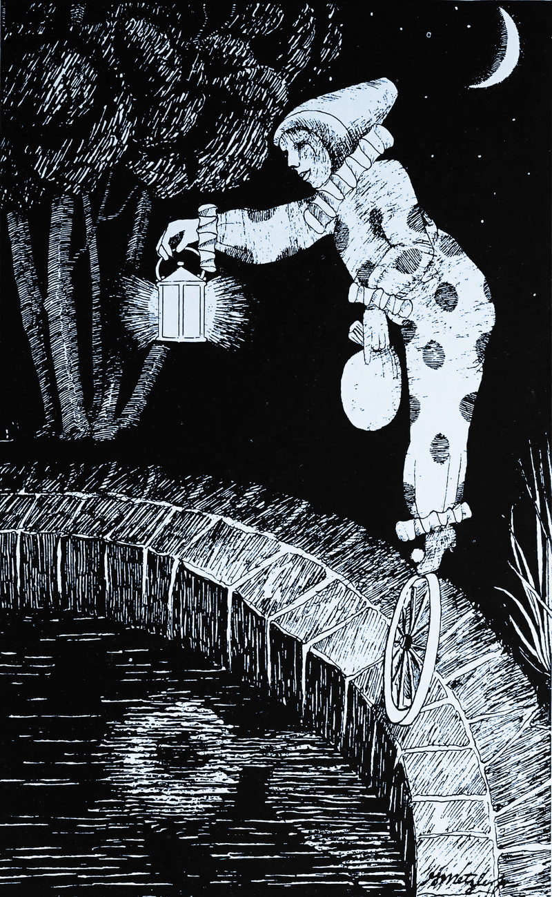 #vintage illustration #balancing act #lantern #clown #vintage yearbook #yearbook #1920s #illustration #unicycle